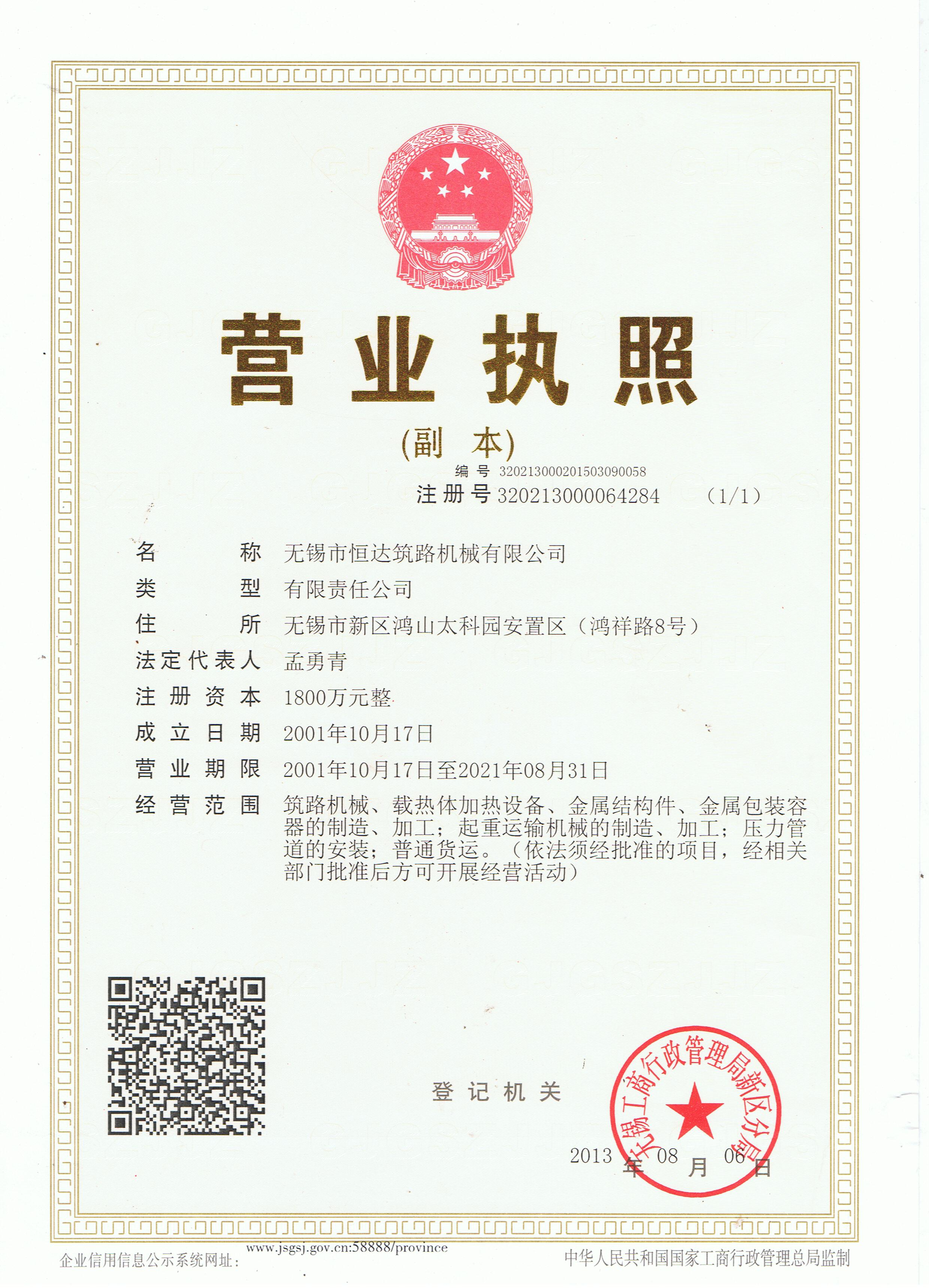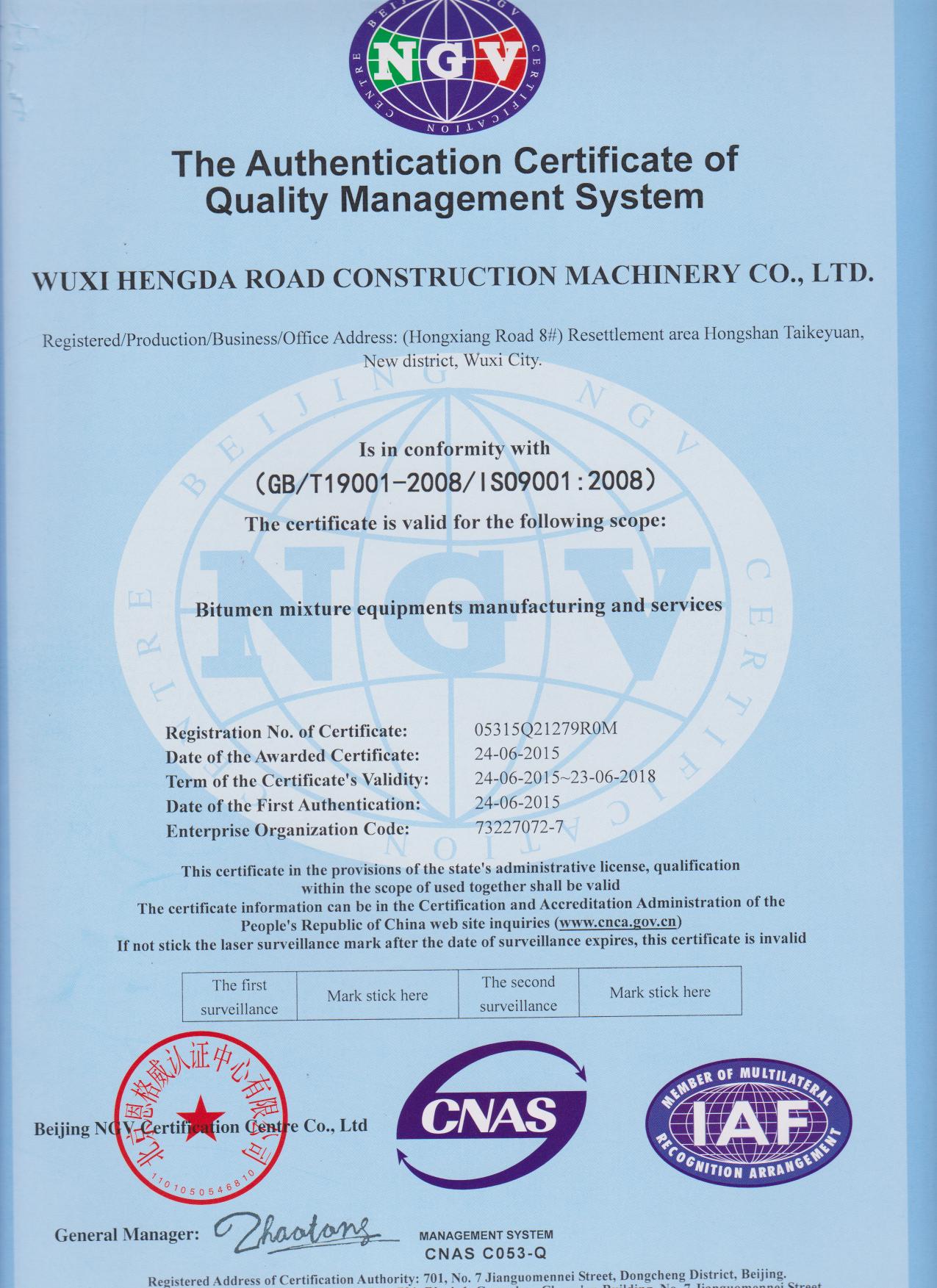 Company Profile > Honor&Qualification-HENGDA ROAD CONSTRUCTION MACHINERY CO.,LTD